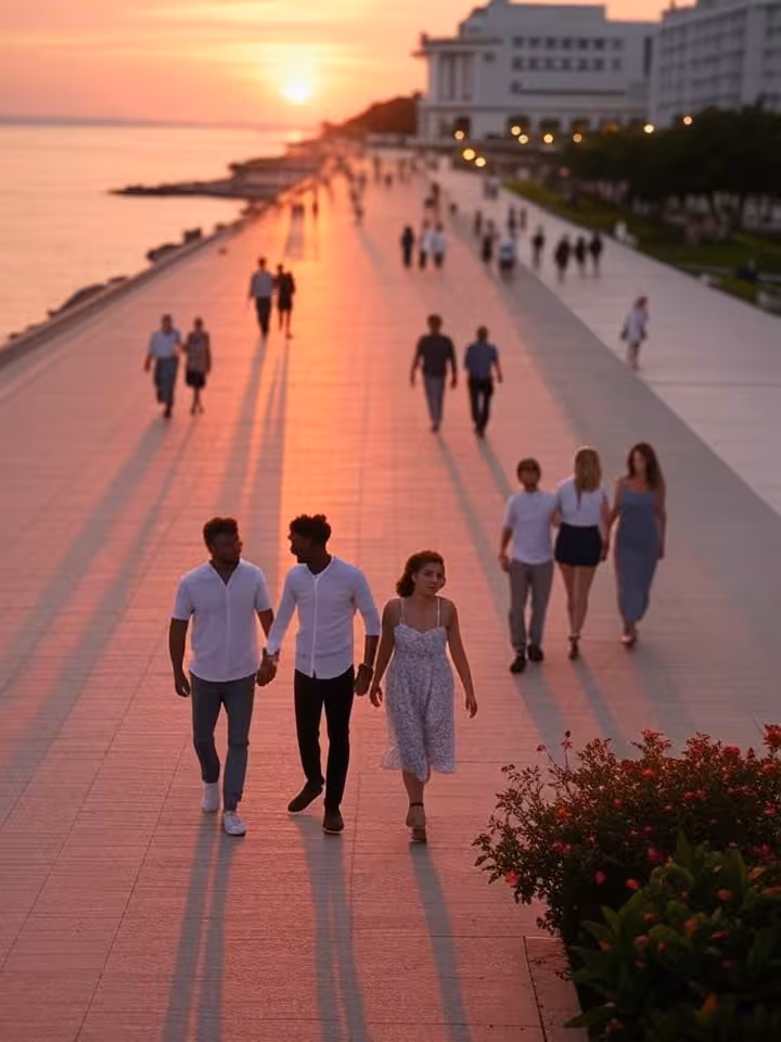Evită orele de vârf turistic – între 11:00 și 16:00 în weekend plajele sunt imposibil de gestionat. Optează pentru întâlniri dimineața devreme (8-10 AM pentru mic dejun pe terasă cu vedere la mare) sau seara târziu după 20:00 când agitația scade. Mijlocul săptămânii oferă mai multă liniște decât weekendul. Planifică în funcție de evenimente mari – Neversea transformă total atmosfera orașului pe parcursul festivalului.